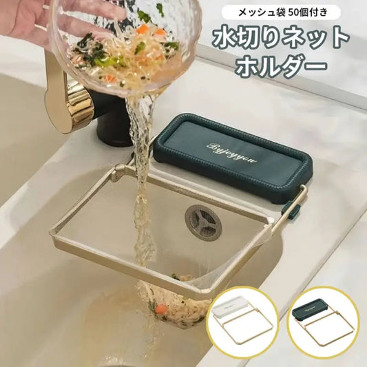 楽フィルター™【三角排水】折り畳み式・水切りネット・ステンレス製・生ゴミ袋ホルダー